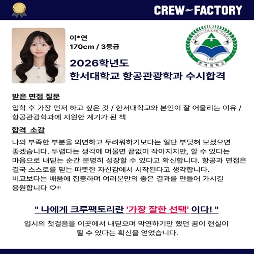 26학년도 한서대 항공관광학과 합격생 후기